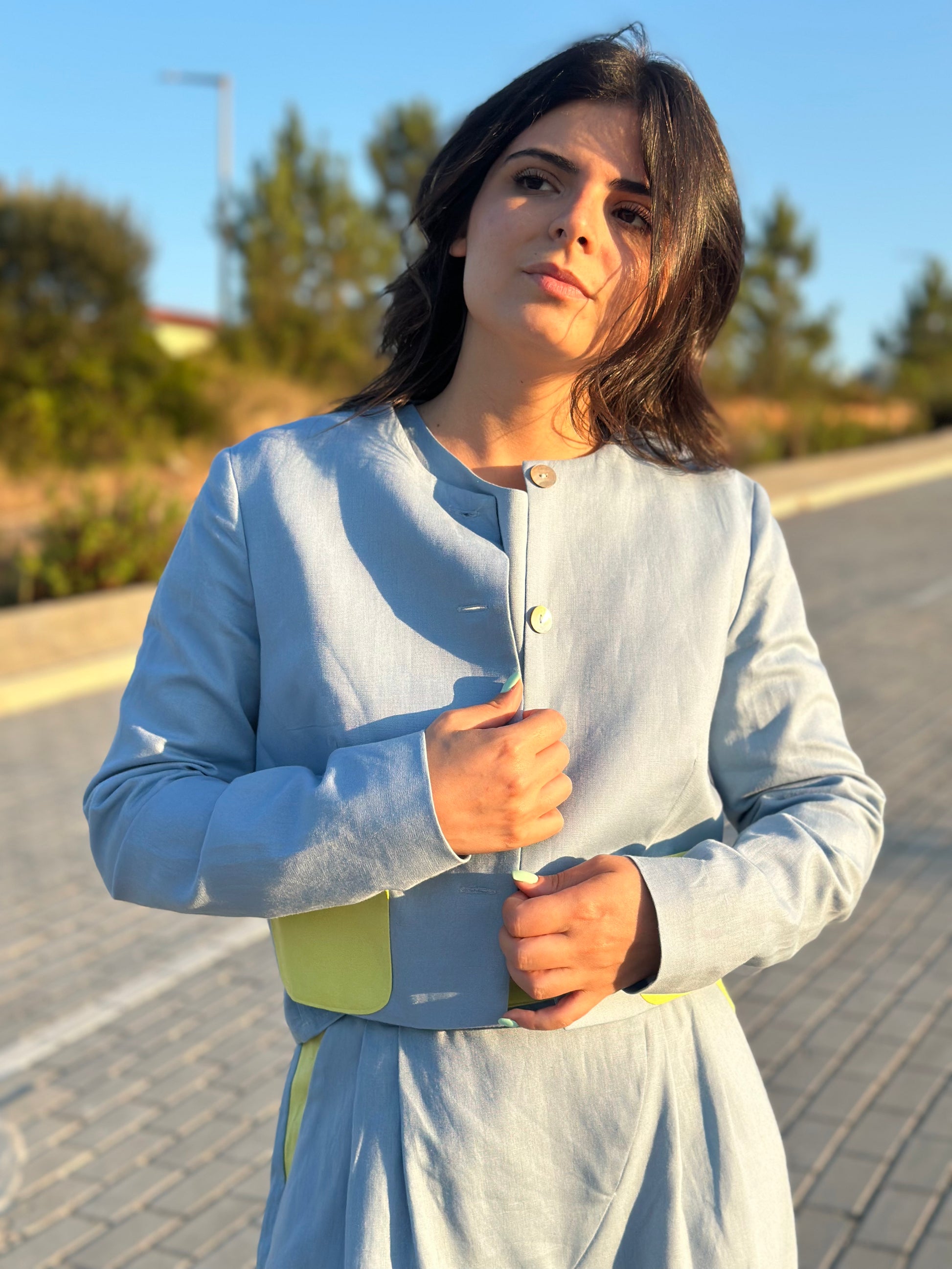 Casaquinho LARAL | Cor Azul com Verde Abacate